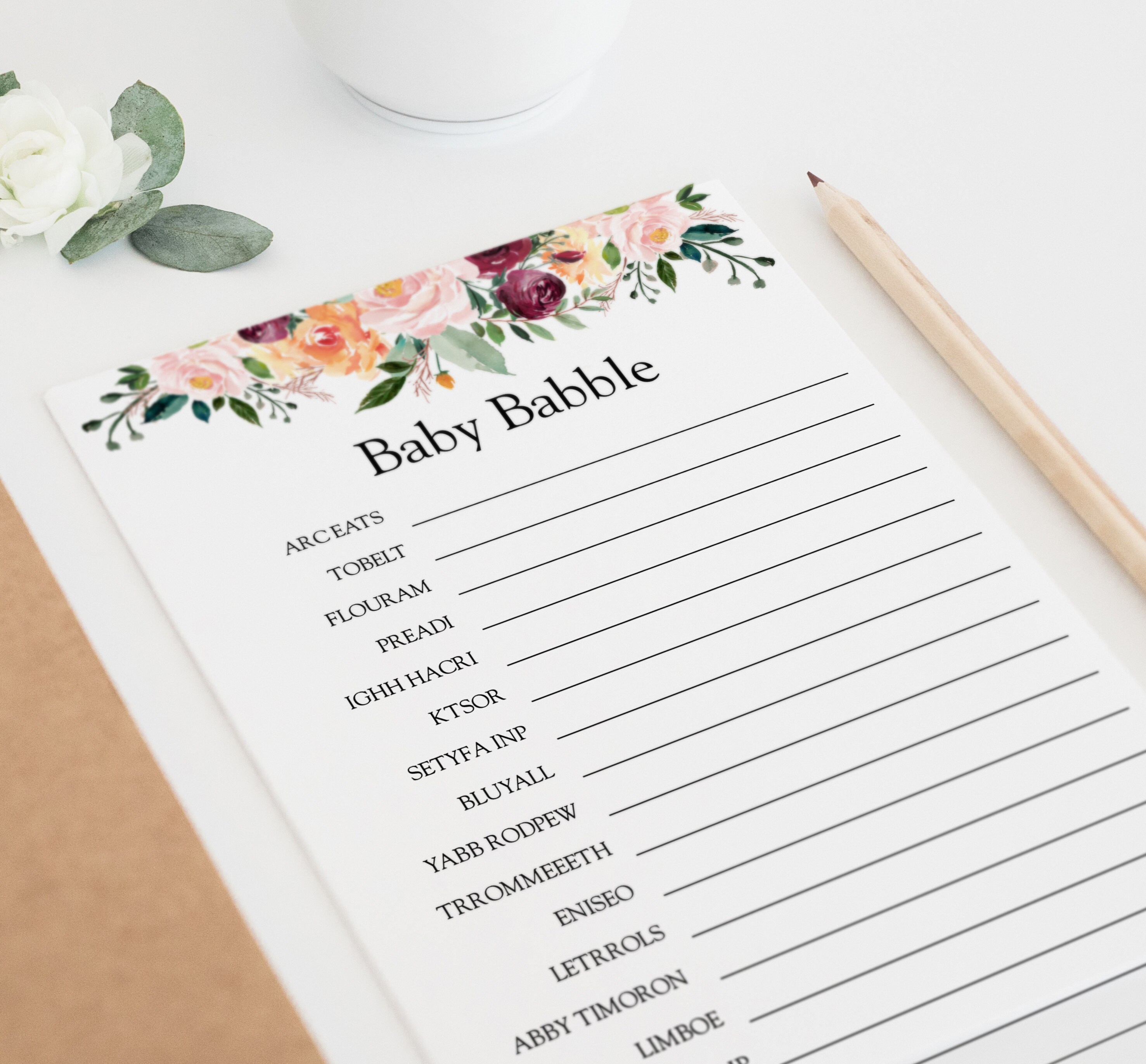 Kate Baby Shower Games Baby Word Scramble Game Baby Scramble Shower Game Spade Theme Printable Kate Baby Shower Floral Baby Babble Game By Sweet Rain Design Catch My Party